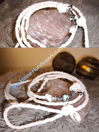 für Kleinhunde, Halsteil Nappaleder handgenäht, 19cm, Breite 20mm, für Kopfumfang maximal 30cm, Halsschlaufe mit Wirbel verstellbar, Shamballa-Perle, Leinenteil Reepschnur 3mm, 150cm, Einzelstück